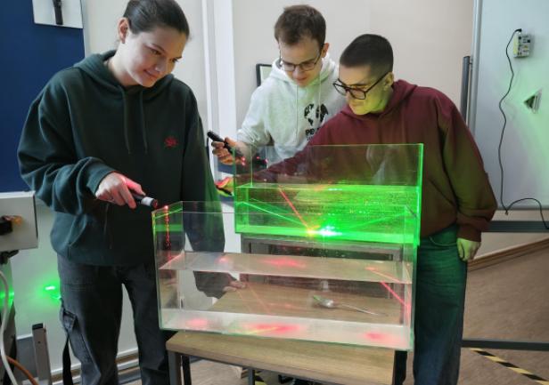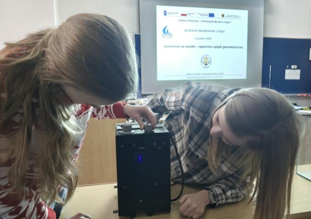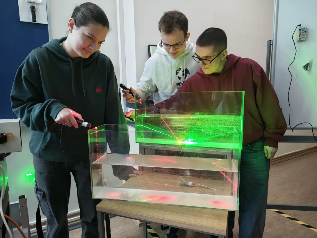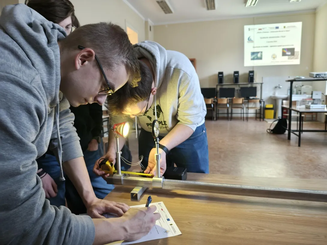 Na ćwiczeniach praktycznych i laboratoriach uczniowie mieli możliwość samodzielnego przeprowadzenia  pomiarów, które pozwoliły im wyznaczyć współczynnik załamania materiału i ogniskową soczewki.  Uczniowie aktywnie uczestniczyli w zajęciach i chętnie zadawali pytania.