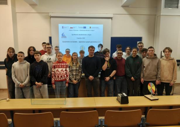 Spotkanie akademickie z fizyki pt. Spojrzenie na światło – tajemnice optyki geometrycznej odbyło się w murach UMG. Na wykładzie urozmaiconym o pokazy uczniowie poznali prawa optyki geometrycznej i mieli możliwość sprawdzenia zachowania się światła w różnych sytuacjach. Dowiedzieli się także jak optyka geometryczna tłumaczy działanie przyrządów optycznych.