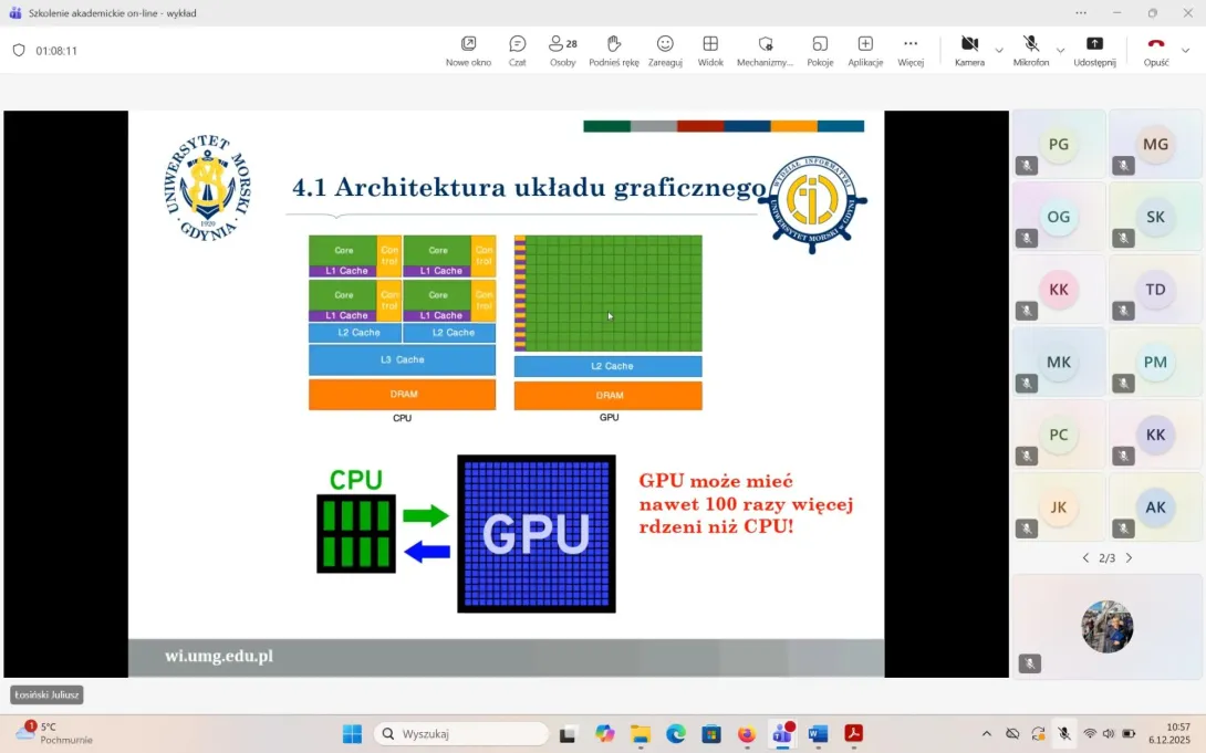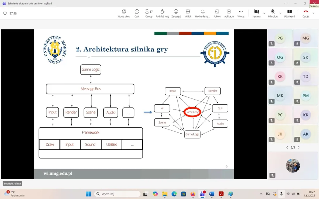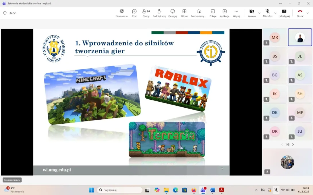 W dniu 6 grudnia 2025 r. odbyły się kolejne zajęcia: spotkanie akademickie z fizyki oraz szkolenie akademickie on-line z informatyki realizowane w ramach projektu "Zdolni z Pomorza - Uniwersytet Morski w Gdyni".