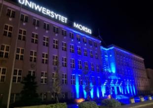 Budynek UMG w niebieskich barwach z okazji Światowego Dnia Morza