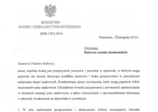 List minister Leny Kolarskiej-Bobińskiej w sprawie przejrzystość procesów i procedur