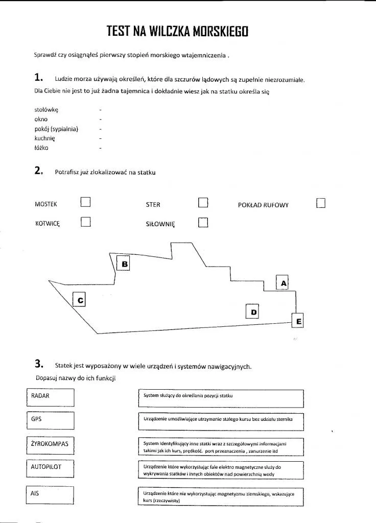 Oficerowie "Horyzonta" zapoznają młodych gości z historią statku, jego budową, przeznaczeniem, specyfiką morskiej służby. Elementem tych swoistych lekcji jest zwiedzanie podstawowych statkowych wnętrz:maszynowni, pomieszczeń załogowych, kabiny i mostka nawigacyjnego, ale także szpitalika czy kuchni. Uczniowie zyskują podstawową wiedzę z tajników morskiej nawigacji. A dzięki multimedialnej prezentacji przygotowanej przez statkowych opiekunów, odbywają także wirtualny rejs, podczas którego poznają geografię i historię mijanych lądów i mórz, epizody z historii żeglugi i białoczerwonej bandery. Prosty test na "wilczka morskiego" sumuje ten dzień. Wcześniej uczniowie odwiedzają "Dar Pomorza", "Błyskawicę" i ośrodek żeglarski Akademii Morskiej. Po noclegu na statku, grupy ruszają na Hel, gdzie trafiają pod opiekę pracowników Stacji Morskiej Uniwersytetu Gdańskiego.