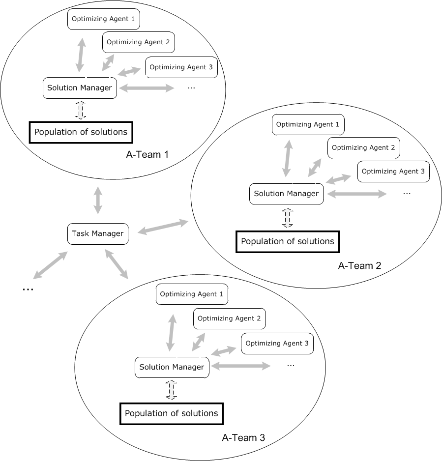 JABAT umożliwia również równoczesne wykorzystanie wielu zespołów asynchronicznych agentów, które współpracują ze sobą podczas obliczeń. Jest to odpowiednik wyspowego modelu algorytmu ewolucyjnego.