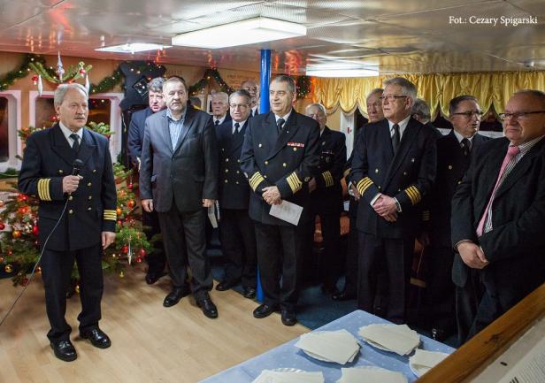 Zbliżają się Święta Bożego Narodzenia, stanowiąc okazję do wspólnych opłatkowych spotkań i przekazywania sobie wzajemnie życzeń wszelkiej pomyślności. I tak w poniedziałkowy wieczór, 16 grudnia, jedno z takich spotkań przebiegło na zacumowanym przy Nabrzeżu Pomorskim w Gdyni katamaranie Żeglugi Gdańskiej "Agat". Zebrali się na jego burcie członkowie gdyńskiego Stowarzyszenia Kapitanów Żeglugi Wielkiej pod dowództwem kpt. ż. w. Andrzeja Królikowskiego. Oczywiście spotkanie takie zawsze jest okazją do wspólnego śpiewania kolęd i spędzenia czasu w uroczystej atmosferze wigilijnej.