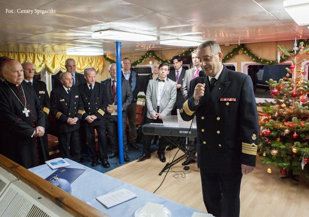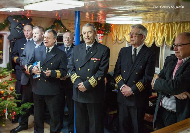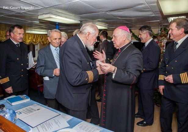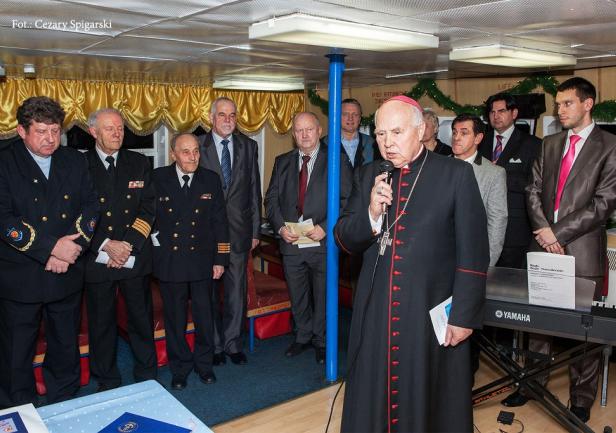 Przy takiej okazji nie mogło zabraknąć JE emerytowanego metropolity gdańskiego arcybiskupa dr. Tadeusza Gocłowskiego, który zawsze podkreśla swoje wieloletnie związki z ludźmi morza. Oczywiście wszystkie życzenia składane przez przemawiających przeplatane były wspólnie śpiewanymi kolędami.