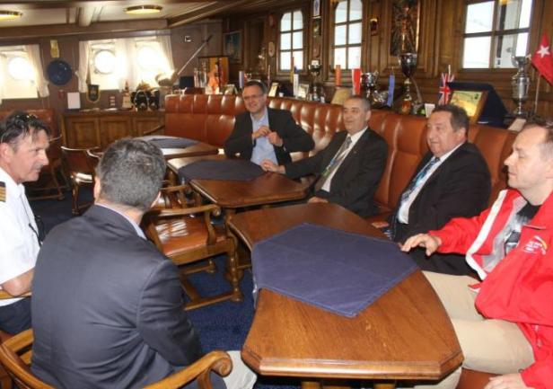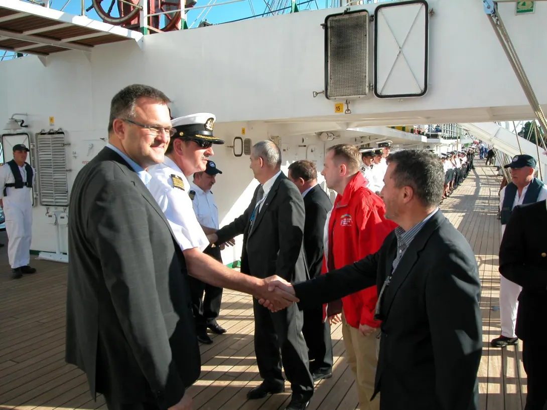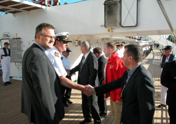 "Dar Młodzieży" cumował przy Wałach Chrobrego, przed dziobem okrętu wsparcia logistycznego Marynarki Wojennej ORP "Kontradmirał Xawery Czernicki". Na pokładzie fregaty gościli przedstawiciele władz miasta, także uczestnicy odbywającego się równolegle 2 Międzynarodowego Kongresu Morskiego. Żaglowiec wizytowali, uczestniczący w Kongresie, rektorzy Akademii Morskiej w Gdyni. Odwiedziła również "Dar" kapitan Joanna Pajkowska - najwybitniejsza aktualnie czynna polska żeglarka, za samotne opłynięcie świata uhonorowana m.in. Nagrodą Rejs Roku 2009, dwukrotna uczestniczka transatlantyckich regat samotnych OSTAR.