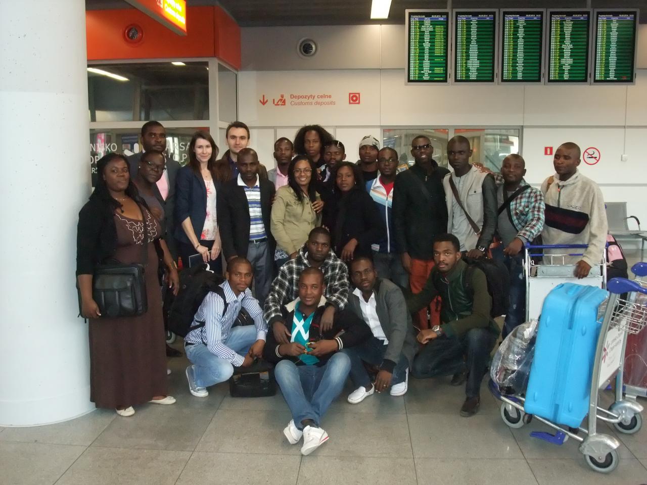 Do Polski przybyła grupa naszych nowych studentów z Angoli, przyszłych nauczycieli akademickich Akademii Rybołówstwa Morskiego w Namibe w Republice Angoli. Zdjęcie obok przedstawia całą grupę tuż po wylądowaniu. Przed rozpoczęciem studiów w Akademii Morskiej w Gdyni cała grupa udała się do Łodzi na kurs języka polskiego.