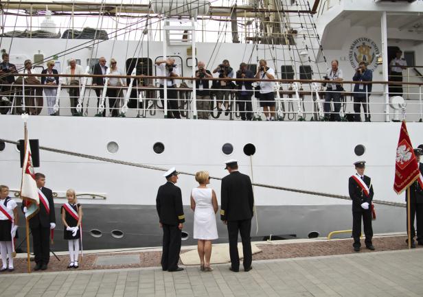 Z pokładu fregaty prezydent Gdyni pan Wojciech Szczurek w towarzystwie profesora Piotra Jędrzejowicza, rektora AMG, dokonał uroczystego otwarcia zlotu. Pamięć komendanta Jurkiewicza uhonorowano, ufundowaną przez Gdynię, tablicą wmurowaną w Nabrzeże Pomorskie u burty "Daru Młodzieży". Oprawę uroczystości, zgodnie z morskim ceremoniałem, zapewniła załoga "Daru", a obok rodziny Kazimierza Jurkiewicza, honor Komendantowi oddali m.in. dawni podkomendni - czterej członkowie tamtej, zwycięskiej załogi "Daru Pomorza" z 1972 roku.