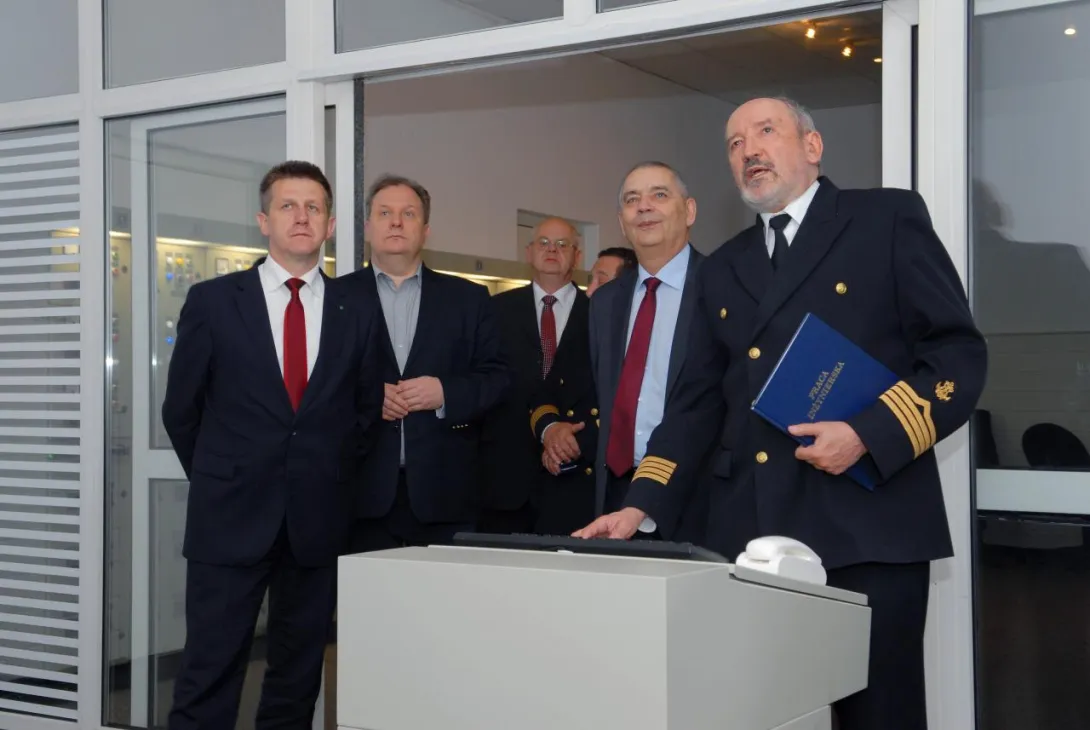 Parlamentarzysta w towarzystwie Rektora AMG prof. Piotra Jędrzejowicza obejrzał najnowsze laboratoria i symulatory na wydziale mechanicznym i nawigacyjnym uczelni. W trakcie wizyty gość rozmawiał z kadrą naukowo-dydaktyczną, zapoznał się z programem studiów, procesem kształcenia oraz załogą statku badawczo-szkoleniowego m/s ,,Horyzont II".
