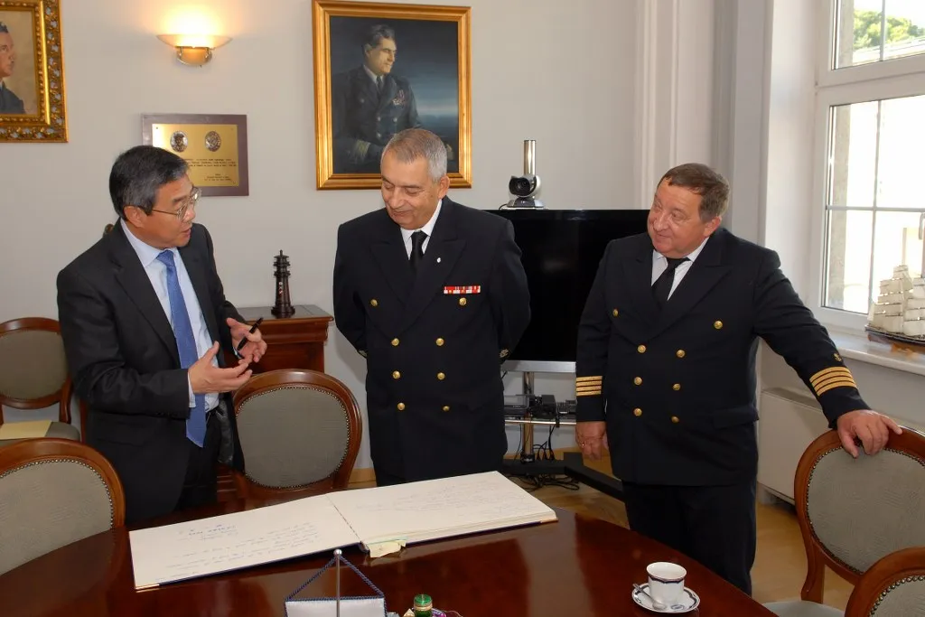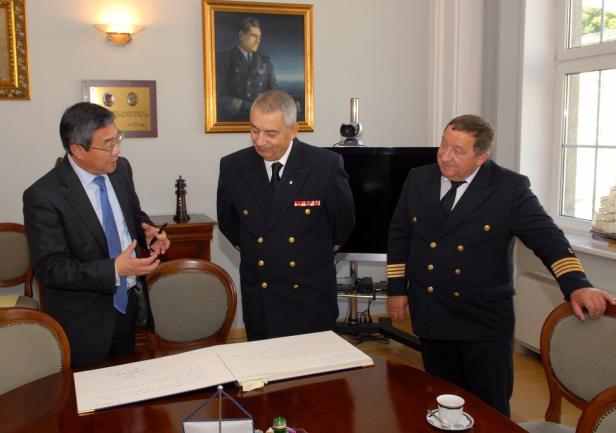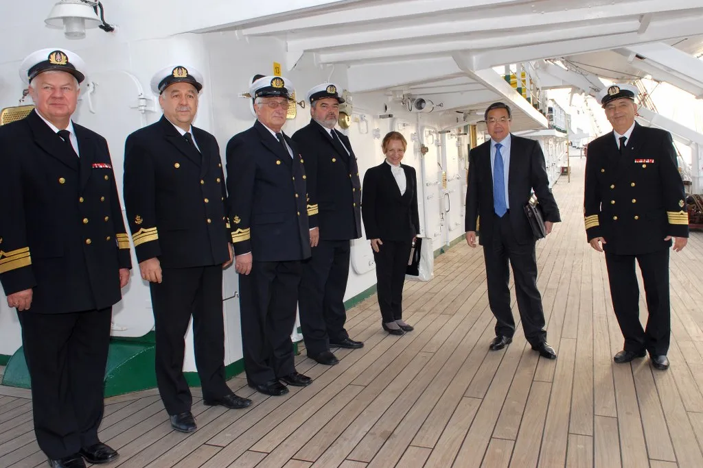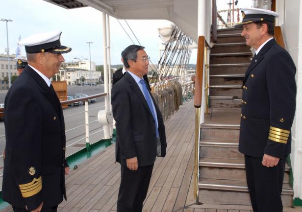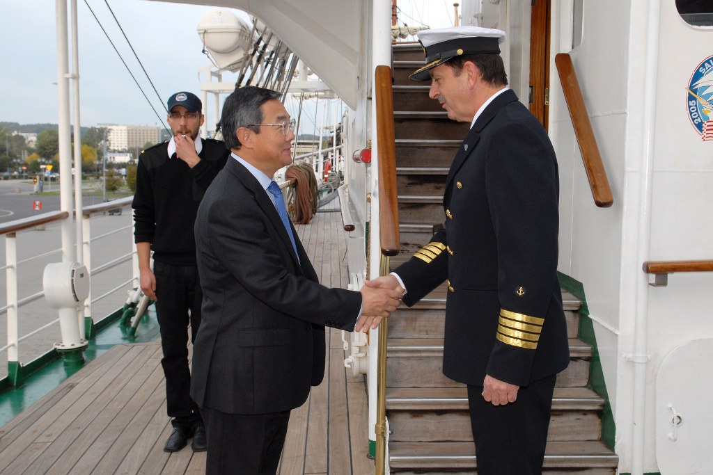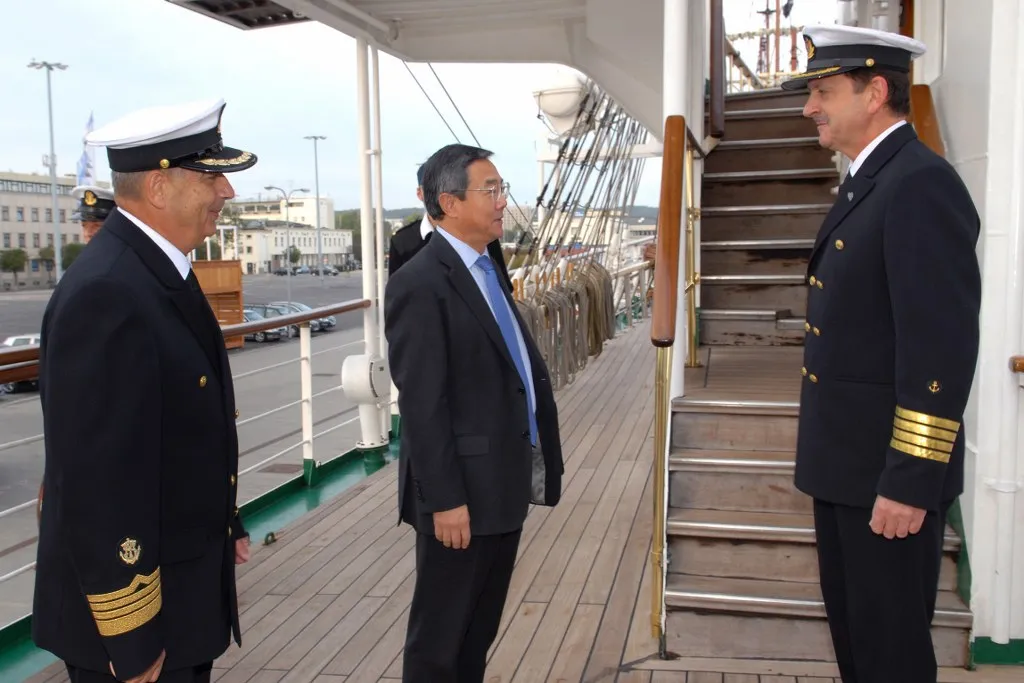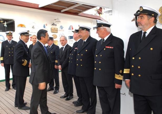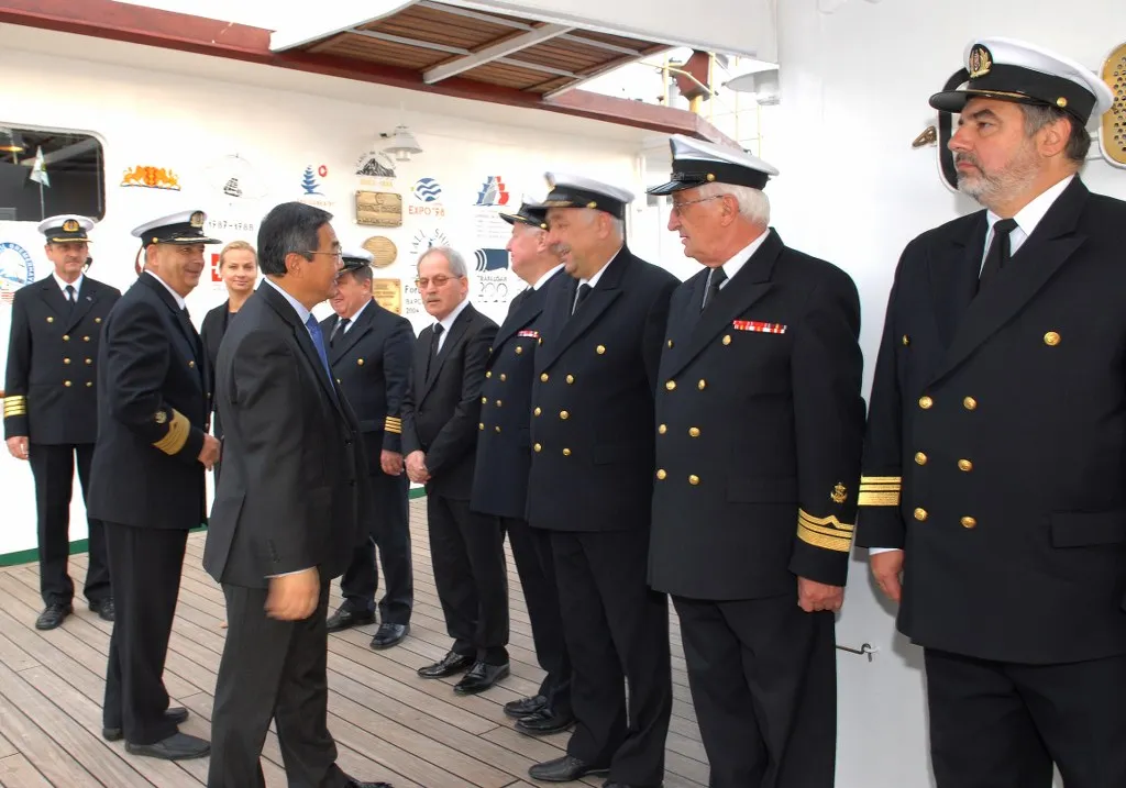 Sekretarz Generalny Międzynarodowej Organizacji Morskiej (IMO), Pan Koji Sekimizu, odbywający kilkudniową wizytę w Polsce,  był gościem rektora Akademii Morskiej w Gdyni pana profesora Piotra Jędrzejowicza. W godzinach rannych odwiedził „Dar Młodzieży” – uczestniczył m.in. w ceremonii podniesienia bandery. W spotkaniu na pokładzie żaglowca, obok władz Akademii, uczestniczyły także panie Dorota Pyć, podsekretarz stanu w Ministerstwie Infrastruktury i Rozwoju oraz Anna Wypych-Namiotko, przedstawicielka polskiego rządu przy IMO.