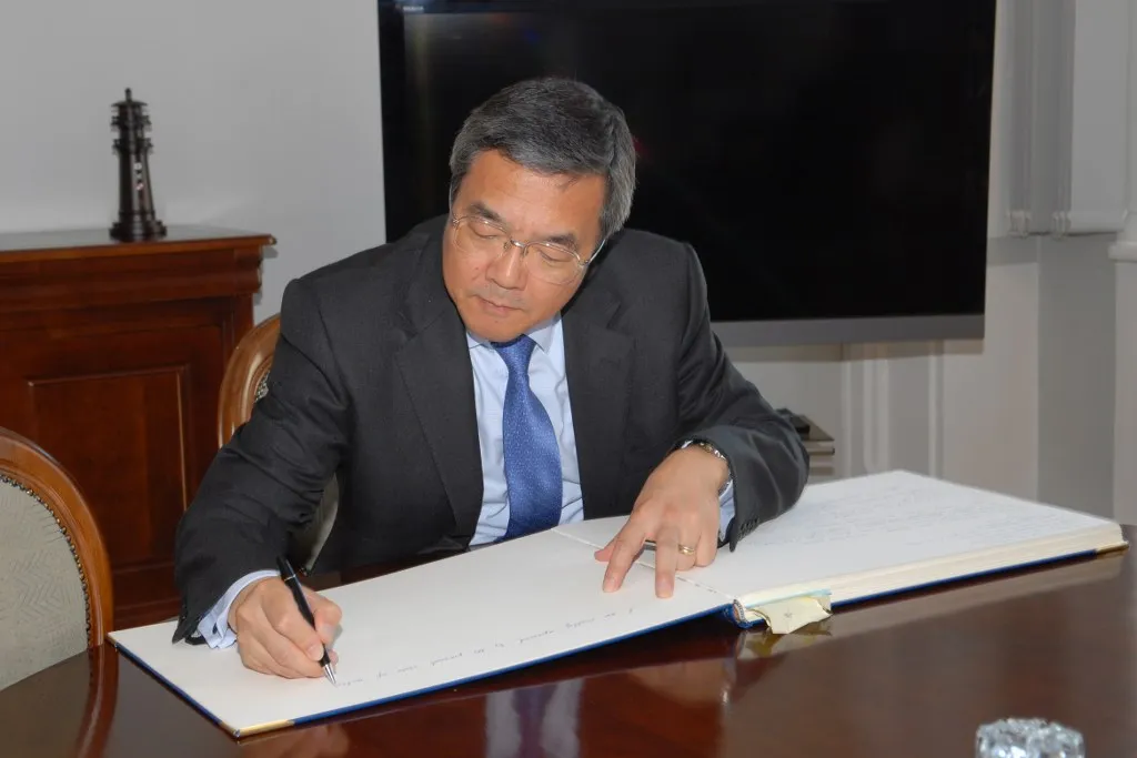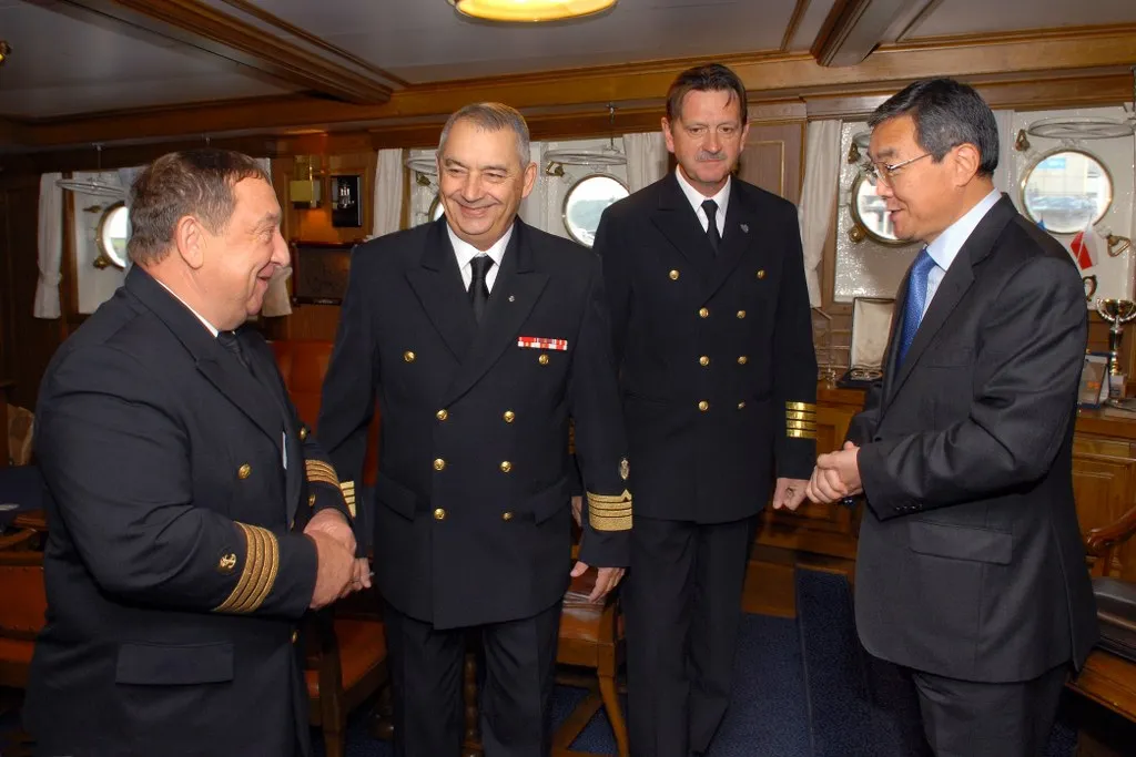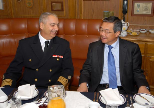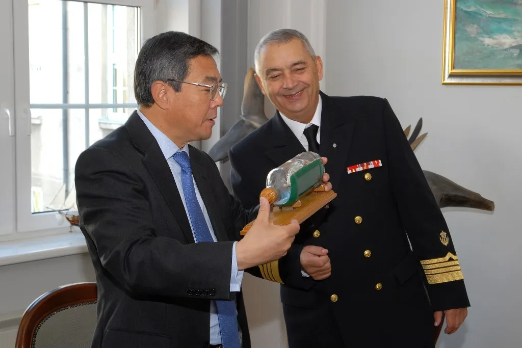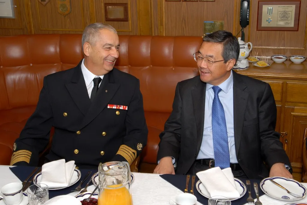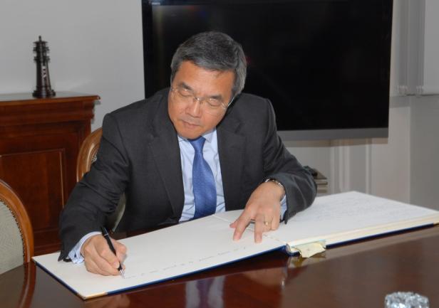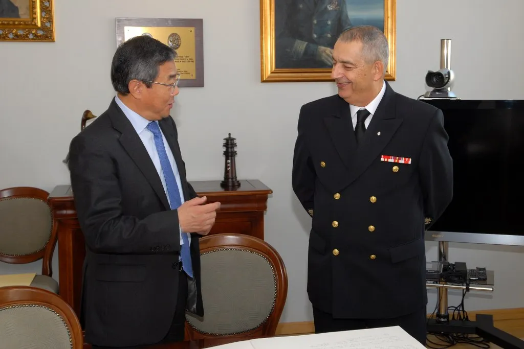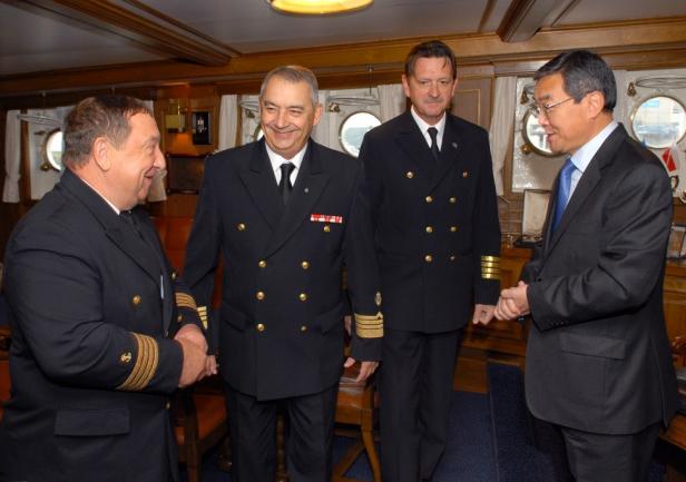 Sekretarz Generalny Międzynarodowej Organizacji Morskiej (IMO), Pan Koji Sekimizu, odbywający kilkudniową wizytę w Polsce,  był gościem rektora Akademii Morskiej w Gdyni pana profesora Piotra Jędrzejowicza. W godzinach rannych odwiedził „Dar Młodzieży” – uczestniczył m.in. w ceremonii podniesienia bandery. W spotkaniu na pokładzie żaglowca, obok władz Akademii, uczestniczyły także panie Dorota Pyć, podsekretarz stanu w Ministerstwie Infrastruktury i Rozwoju oraz Anna Wypych-Namiotko, przedstawicielka polskiego rządu przy IMO.