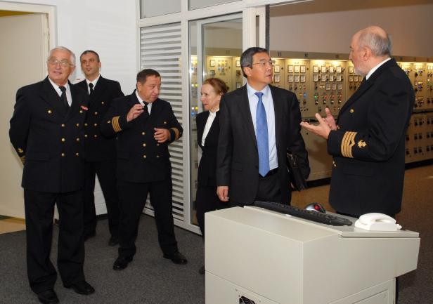 Goście zapoznani zostali z aktualną ofertą edukacyjną Akademii, zwiedzili obiekty, symulatory i laboratoria Wydziału Nawigacyjnego przy Alei Jana Pawła II oraz Wydziału Mechanicznego przy ul. Morskiej. Sekretarz Generalny IMO wpisał się także do Księgi Pamiątkowej AMG.