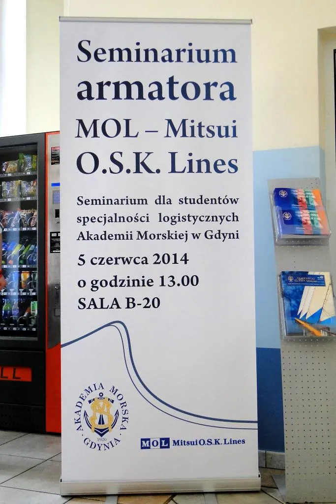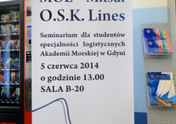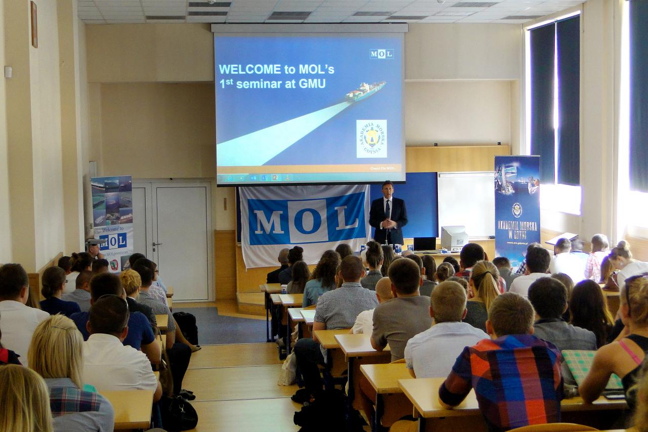 Z udziałem JM rektora Akademii Morskiej w Gdyni Pana prof. zw.dr hab. Piotra Jędrzejowicza odbyło się spotkanie z przedstawicielami jednego z największych armatorów kontenerowych świata MOL Mitsui O.S.K. Lines. W seminarium uczestniczyli liczni studenci specjalności logistycznych Akademii Morskiej w Gdyni. Podczas spotkania połączonego z prezentacją multimedialną przedstawiciele firmy  opowiadali o planach rozwoju firmy oraz o możliwościach podjęcia przez absolwentów Akademii Morskiej pracy w nowopowstającym centrum logistycznym w Gdańsku.