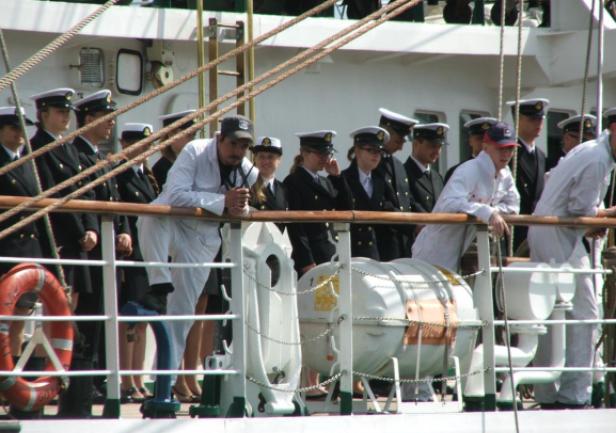 Po zacumowaniu, komendanta i załogę nagrodzono oklaskami, a świst trapowy żegnający pilota portowego, wzbudził żywe komentarze.