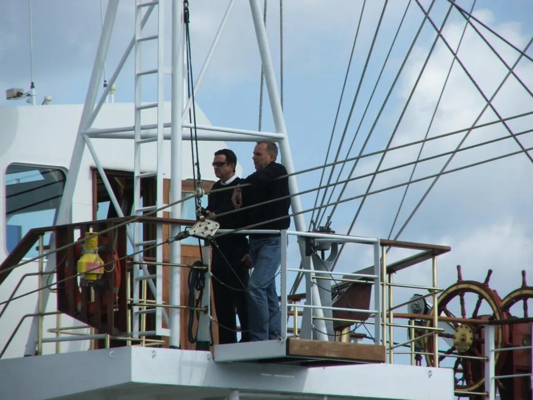 "ciociu, wiesz jaka niespodzianka, akurat jak przyszliśmy do portu wpłynął taki wielki żaglowiec,... jaki ? no polski....". Było jeszcze trochę po niemiecku: ".... schön, wunderbar..."