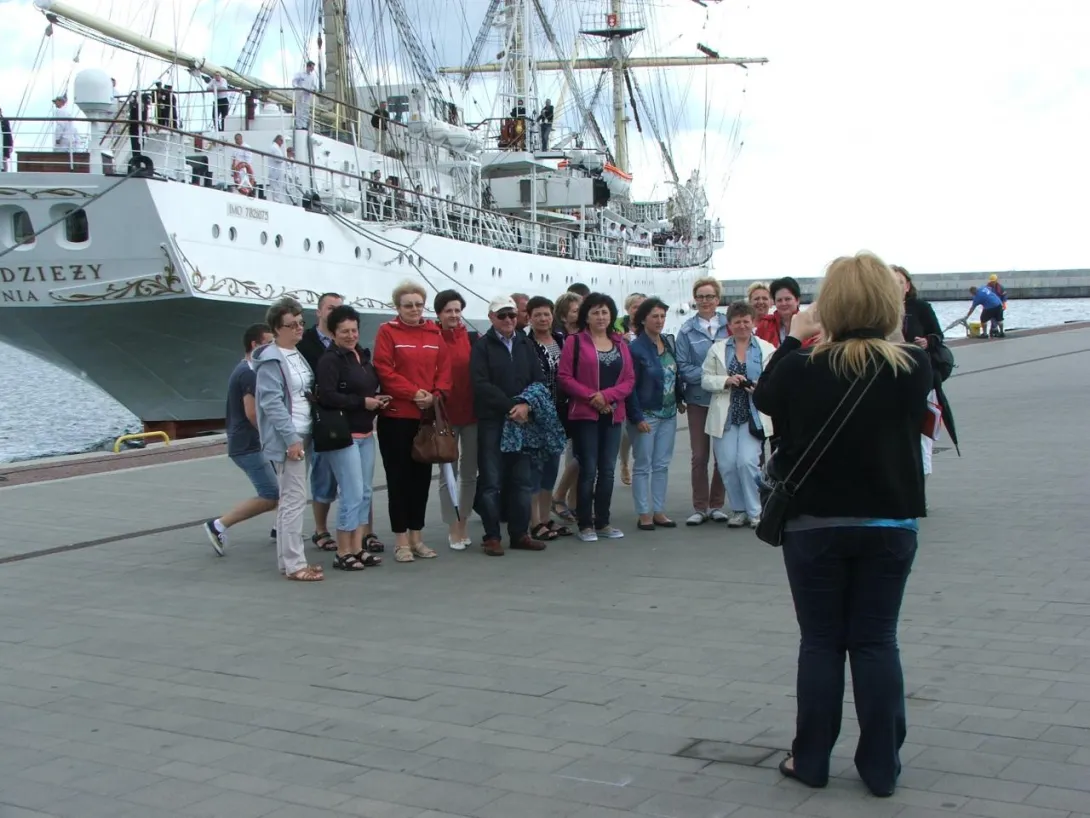 "Ewa, słuchaj, nie masz pojęcia, właśnie jestem w Gdyni, tutaj wpływa taki okręt - Dar Młodzieży - niesamowite...";