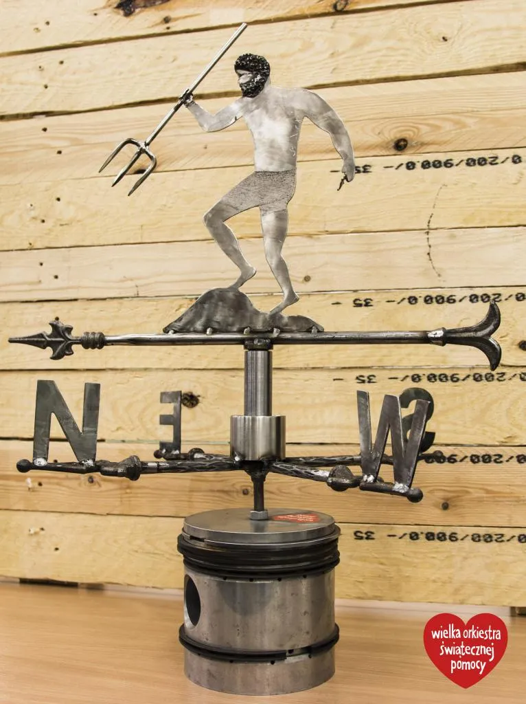 Studenci i pracownicy Wydziału Mechanicznego wykonali niezwykły, orkiestrowy wiatrowskaz z Neptunem, który wraz z kalendarzami i zestawem sportowym (sakwa, unikatowe koszulki kolarskie z Darem Młodzieży, dzwonki rowerowe, czapki z daszkiem) będzie można licytować podczas Wielkiej Orkiestrowej Licytacji w Teatrze Miejskim im. Witolda Gombrowicza w Gdyni. Start licytacji o godz. 18.00
