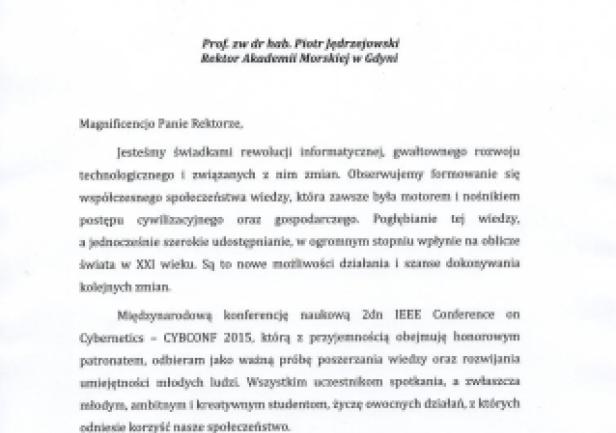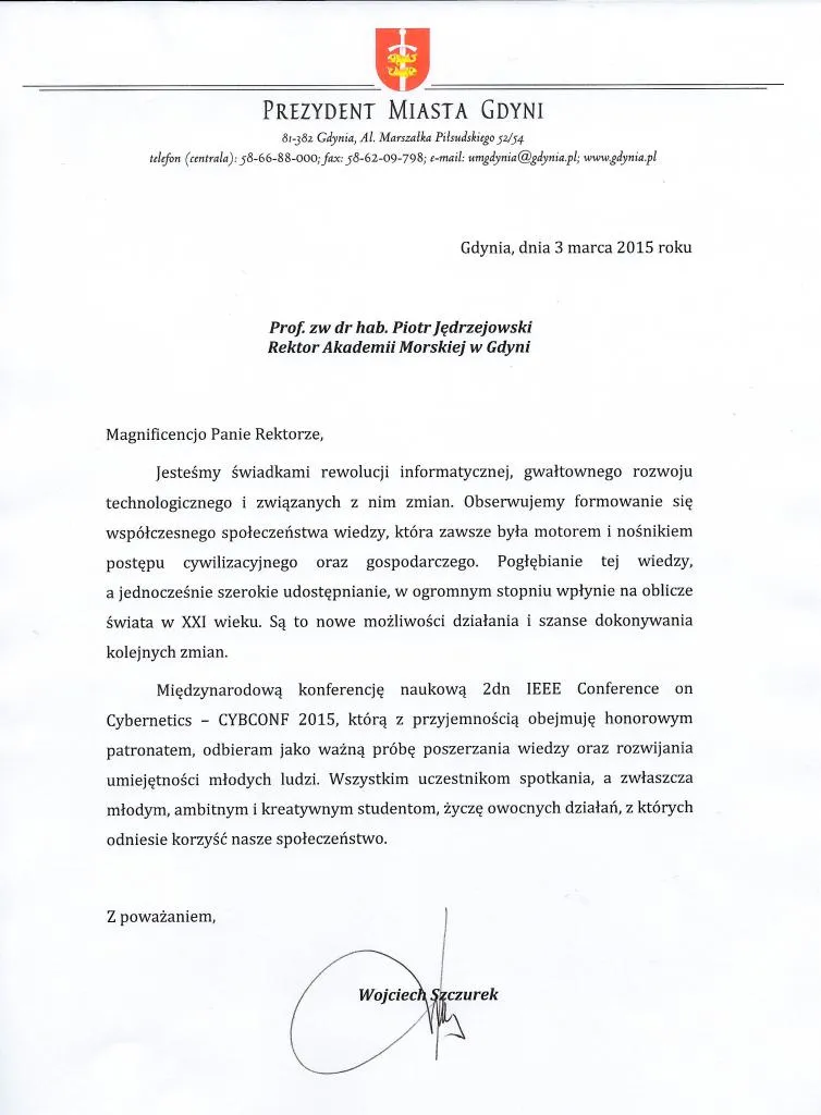 W Pomorskim Parku Naukowo-Technologicznym w Gdyni dniach 24-26 czerwca 2015 roku odbyła się konferencja naukowa poświęcona problemom informatyki, systemom sterowania i przetwarzaniu informacji – IEEE International Conference on Cybernetics (CYBCONF 2015).