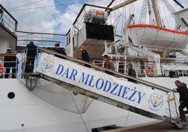 Wizyta i zwiedzanie żaglowca szkoleniowego Akademii Morskiej „Dar Młodzieży”, zwieńczająca kapitańskie szkolenie, była dla części uczestników nostalgicznym powrotem do studenckich lat,  kiedy to właśnie pod żaglami fregaty rozpoczynali swą marynarską edukację.