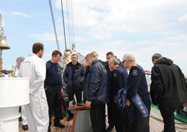 "Dar Młodzieży" odwiedziła grupa 12 kapitanów pływających w barwach norweskiego armatora Green Reefers z siedzibą w Bergen, przechodzących  szkolenie w ramach powstałego, na stojącym w Gdyni statku „Antares”,  centrum treningowego zorganizowanego przez gdyński management Green Reefers Group .