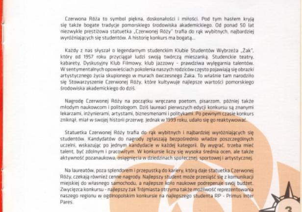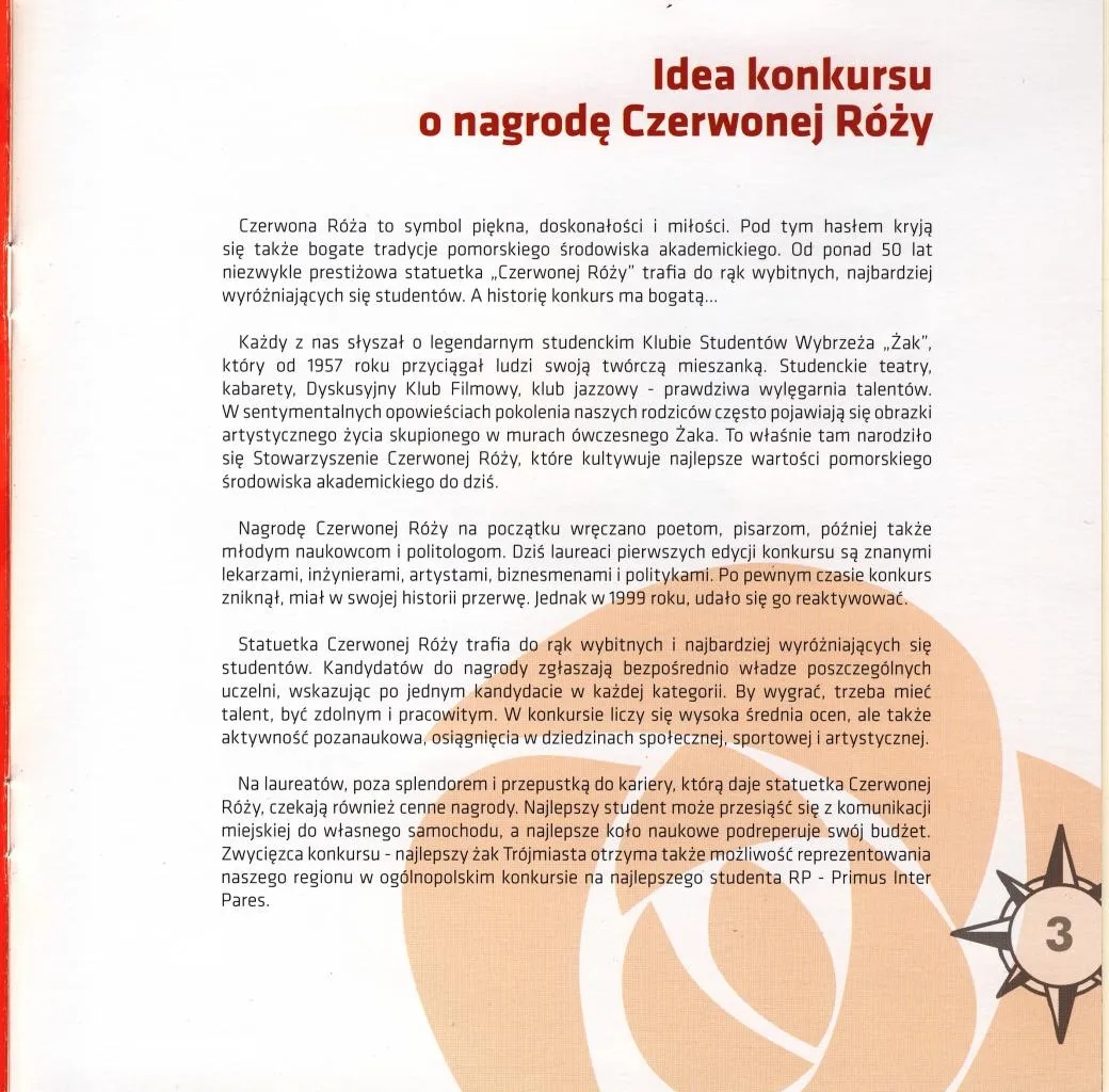 W tym roku o statuetkę Czerwonej Róży rywalizowało 8 osób oraz 10 kół naukowych z rożnych placówek edukacyjnych m.in. Koło Naukowe Bezpieczeństwa Morskiego, Akademia Marynarki Wojennej w Gdyni; Naukowe Koło Towaroznawstwa CARGO, Akademia Morska w Gdyni; Koło Artystyczno-Naukowe Wydziału Dyrygentury, Kompozycji i Teorii Muzyki, Akademia Muzyczna w Gdańsku; Koło Naukowe Wzornictwa Proces, Akademia Sztuk Pięknych w Gdańsku; Studenckie Koło Naukowe Fizjologii, Akademia Wychowania Fizycznego i Sportu w Gdańsku; Koło Naukowe Studentów Nauk o Rodzinie „Silva Rerum”, Ateneum Szkoła Wyższa w Gdańsku; The English Division Pediatric Oncology Scientific Circle, Gdański Uniwersytet Medyczny; Koło Studentów Techniki Okrętowej KORAB, Politechnika Gdańska; Koło Naukowe Empiria, Szkoła Wyższa Psychologii Społecznej Sopot; Koło Naukowe Kryminologii, Uniwersytet Gdański.