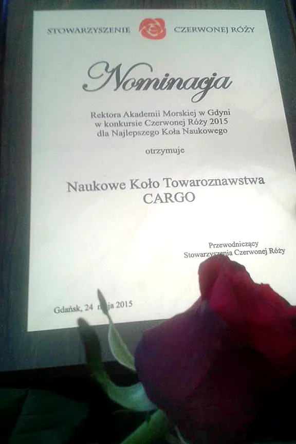 Z przyjemnością informujemy, że Naukowe Koło Towaroznawstwa CARGO zostało nominowane w konkursie o nagrodę Czerwonej Róży w kategorii "Najlepsze koło naukowe". Natomiast w kategorii "Najlepszy student" nominowany został Paweł Górecki - student Wydziału Elektrycznego