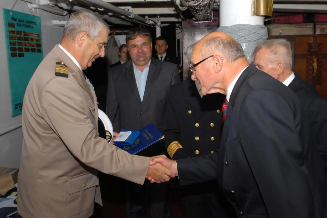 W dniu 22 czerwca na pokładzie ,,Daru Pomorza” odbyła się uroczystość upamiętniająca 85-tą rocznicę podniesienia bandery na Białej Fregacie. W trakcie spotkania na wniosek Zarządu Głównego Ligi Morskiej i Rzecznej oraz Kapituły Wyróżnień JM Rektor Akademii Morskiej w Gdyni prof. zw. dr hab. Piotr Jędrzejowicz odznaczony został KRZYŻEM ,,PRO MARI NOSTRO”. Wręczając odznaczenie Prezes LMiR kpt. ż.w. dr inż. Andrzej Królikowski serdecznie pogratulował Jego Magnificencji zaszczytnego wyróżnienia, oraz złożył wyrazy uznania i szacunku za wspólne dzieło na rzecz Polski Morskiej.