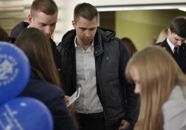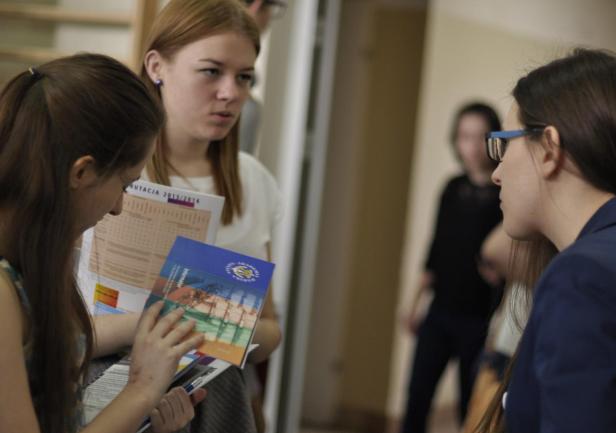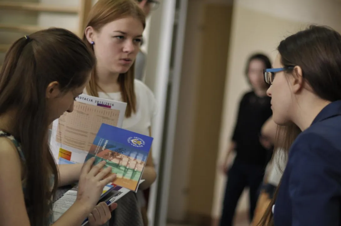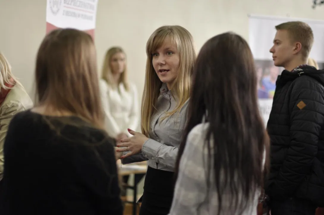 Uczniowie szkół ponadgimnazjalnych z chęcią podchodzili do stoiska informacyjnego uczelni. Zadawali pytania dotyczące rekrutacji, oferty edukacyjnej, mundurów i warunków studiowania.