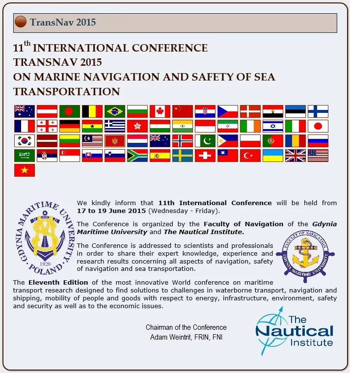 Na Wydziale Nawigacyjnym po raz kolejny odbywa się 11th International Conference TRANSNAV 2015 on Marine Navigation and Safety of Sea Transportation (17 to 19 czerwca 2015).