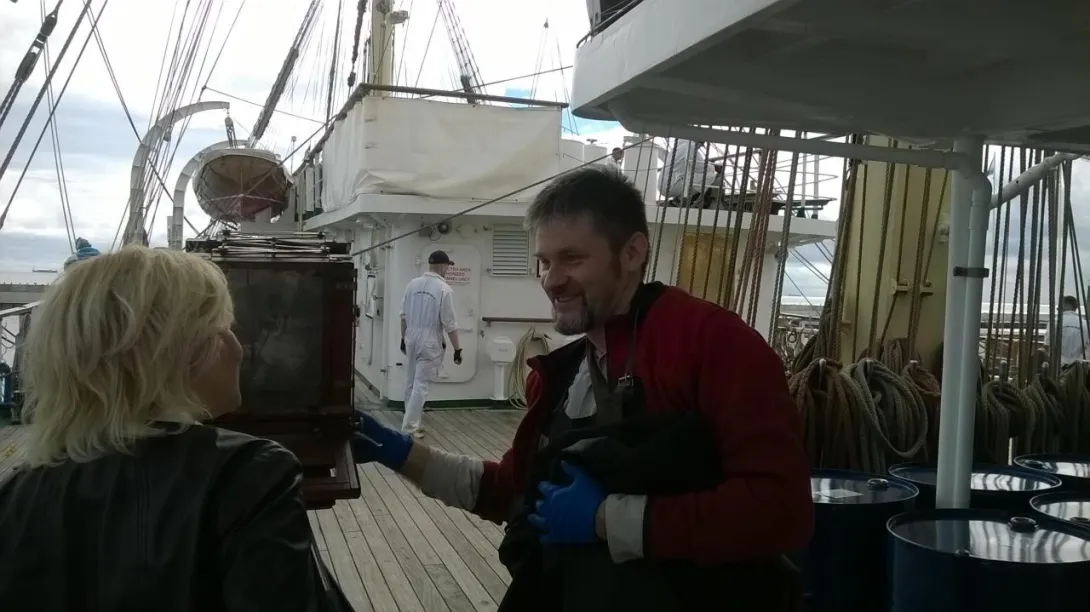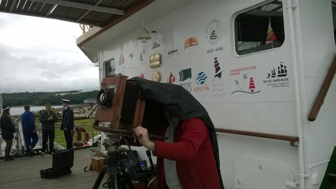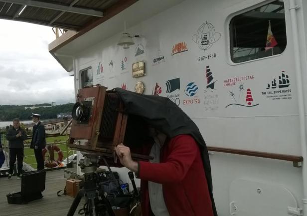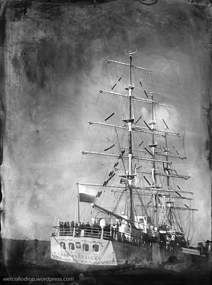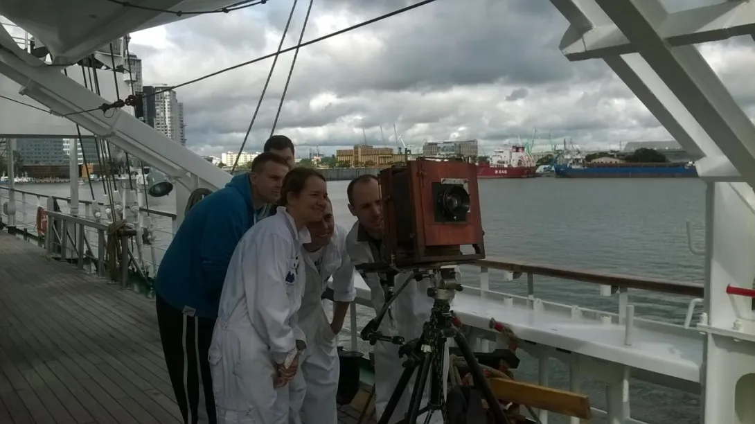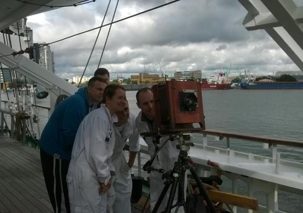 To był niezwykły eksperyment. Na jesienny rejs z Goteborga do Gdyni zaokrętował na „Dar Młodzieży”  pan Andrzej Górski – człowiek zafascynowany XIX wieczną fotografią.  Podczas rejsu wykonał, tradycyjną techniką tzw. mokrego kolodium z pionierskich lat  fotografii , przy użyciu ponad 100-letniego aparatu,  serię zdjęć ukazujących życie żaglowca.