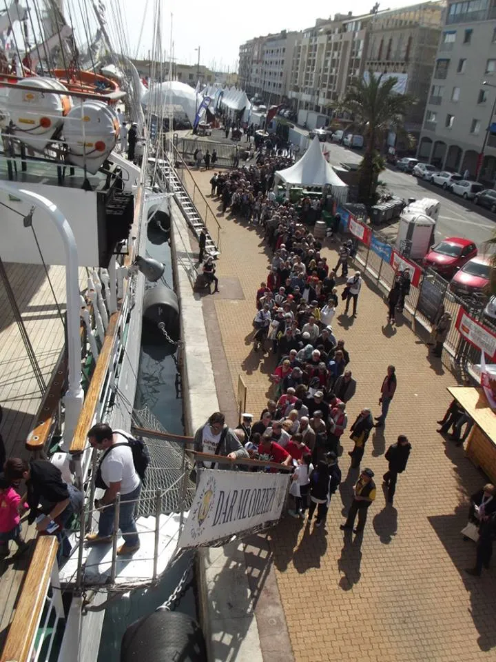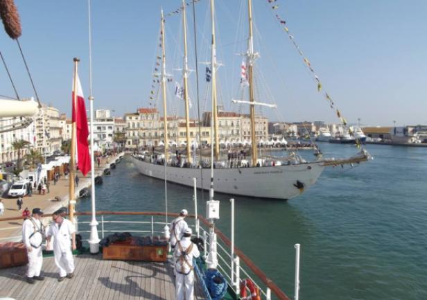 Od 22 marca "Dar Młodzieży" cumuje we francuskim Sete - historycznym porcie świętującym 350 rocznicę założenia. Nasza fregata, na prośbę organizatorów rocznicowego zlotu, zaprezentowała się na wejściu pod pełnymi żaglami, następnie studenci powitali port w paradzie wantowej. W Sete kończą prawie dwumiesięczną praktykę morską studenci II roku Wydziału Mechanicznego AMG.