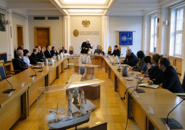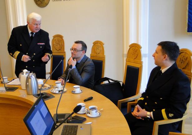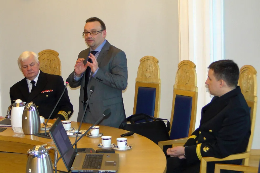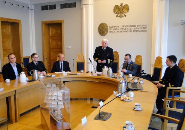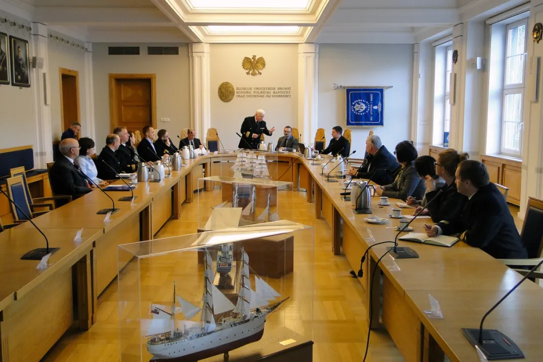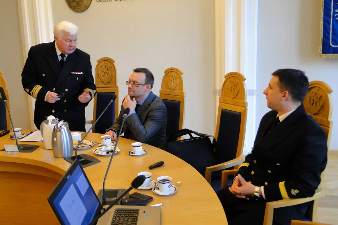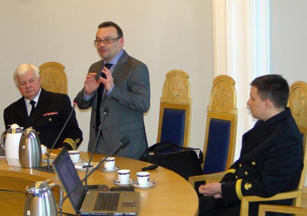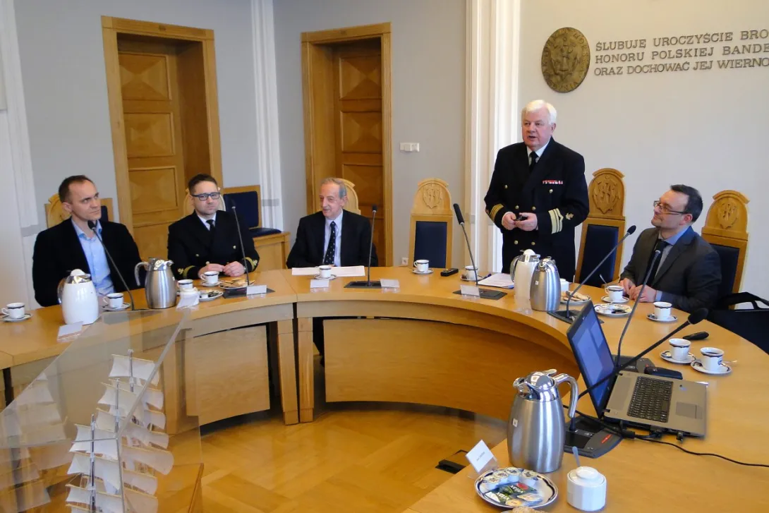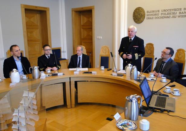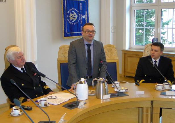 Spotkanie rozpoczęło się prezentacją dyrektora Adama Mikołajczyka, w której przedstawił on genezę oraz etapy definiowania ISP. Dyrektor Mikołajczyk podkreślał fakt, że w województwie pomorskim proces wyłaniania inteligentnych specjalizacji miał charakter oddolny, inny niż miało to miejsce w innych regionach kraju. W definiowaniu ich uczestniczyły środowiska biznesowe i naukowe, powiązane w partnerstwa i zainteresowane rozwijaniem określonych specjalizacji. Pan Dyrektor podziękował za wyraźne zaangażowanie Akademii Morskiej w dotychczasowy proces.