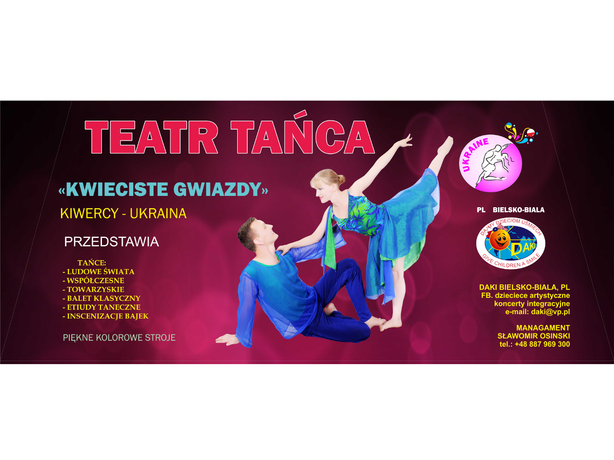 Teatr Tańca „Kwieciste gwiazdy” powstał w 1996 r. przy rodzinnym Domu Dziecka w miejscowości Kiwercy na Ukrainie. Prezentowany przez nich program obejmuje tańce ludowe świata, obyczajowe, balet klasyczny, tańce współczesne – polskie, ukraińskie, chińskie, hiszpańskie, brazylijskie, indyjskie, czeskie, węgierskie, słowackie, irlandzkie i rosyjskie.