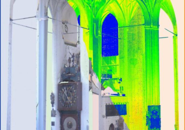 Bazylika Mariacka, największa ceglana świątynia gotycka Europy, wymagała zaplanowania lokalizacji aż 40 stanowisk pomiarowych w sposób zapewniający minimalizację cieni, tj. obszarów, do których wiązka lasera nie jest w stanie dotrzeć.