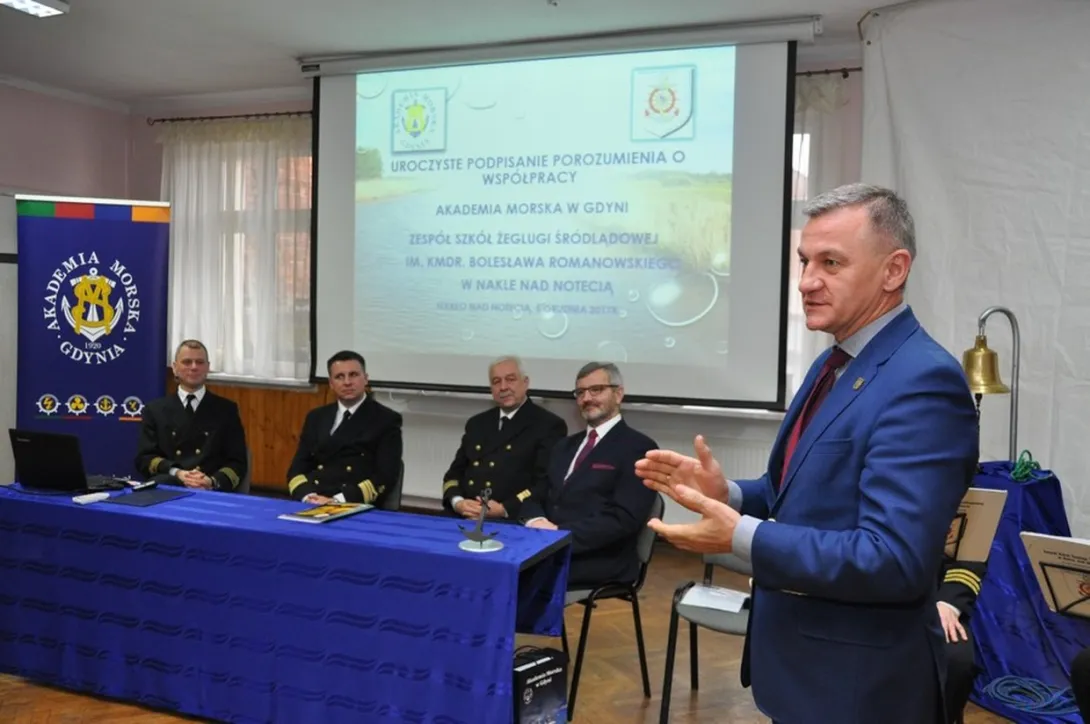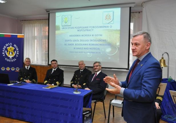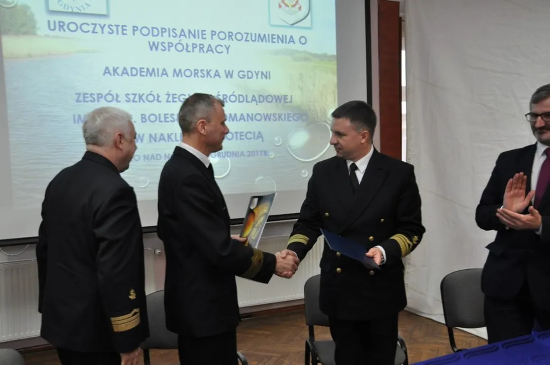 W dniu 05 grudnia 2017r. w Zespołe Szkół Żeglugi Śródlądowej im. kmdr. Bolesława Romanowskiego w Nakle nad Notecią miała miejsce uroczystość podpisania porozumienia o współpracy pomiędzy Akademią Morską w Gdyni a Zespołem Szkół Żeglugi Śródlądowej im. kmdr. Bolesława Romanowskiego w Nakle nad Notecią.