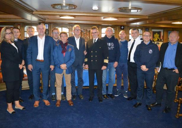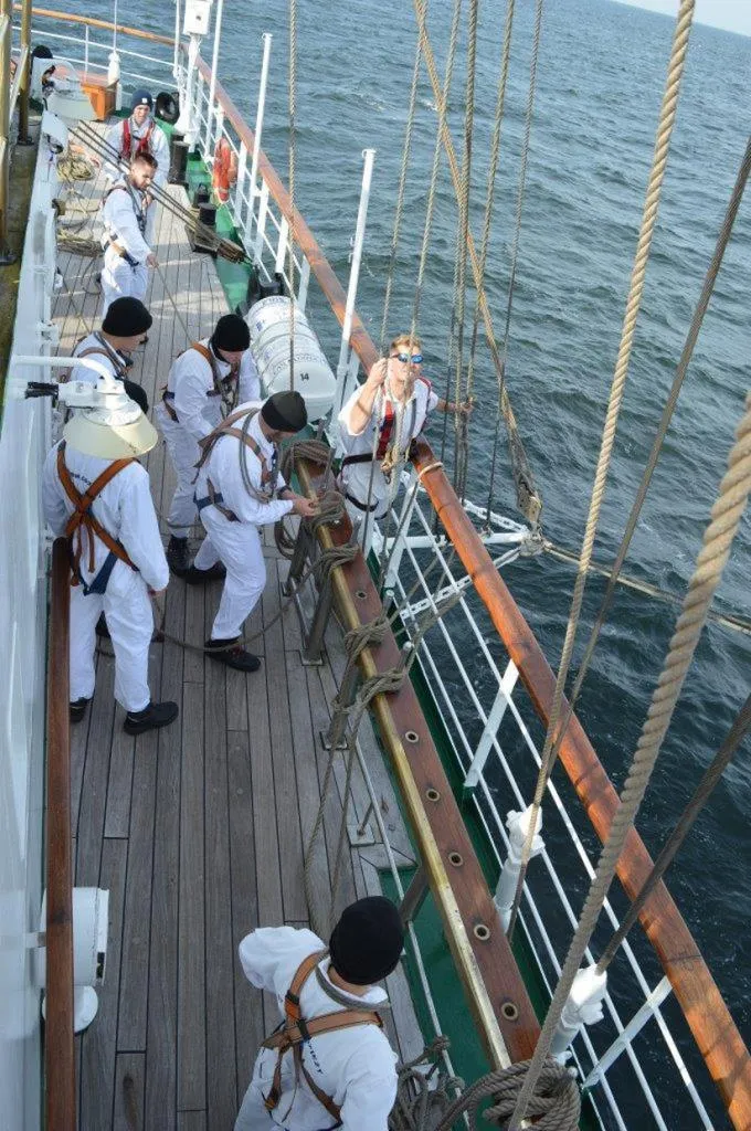 Na koniec dnia miała miejsce niespodziewana dla naszych gości wizyta Magdy Gessler. Pani Gessler na pokładzie Daru Młodzieży filetowała śledzie, przygotowując się do kolejnego odcinka swojego programu.