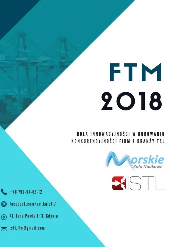 W dniach 22 – 23 marca 2018 r. w budynku Wydziału Nawigacyjnego Akademii Morskiej w Gdyni odbędzie się konferencja Forum Transportowe Młodych (FTM) organizowana przez Koło Naukowe ISTL oraz Morskie Koło Naukowe. FTM jest ogólnopolską studencką konferencją naukową podczas której studenci, stojący u progu swoich karier mają możliwość przedstawić swoje badania oraz wysłuchać i porozmawiać z liderami branży TSL.