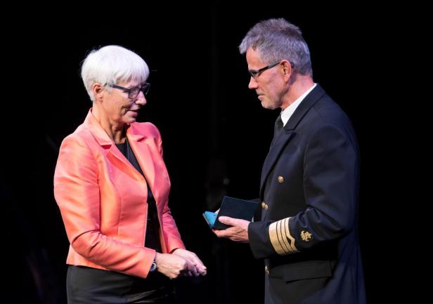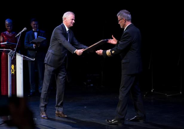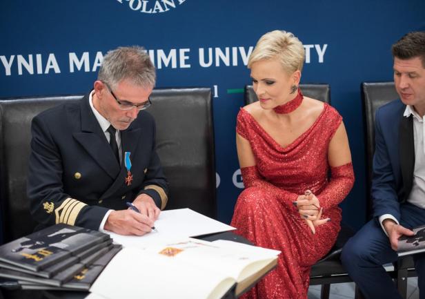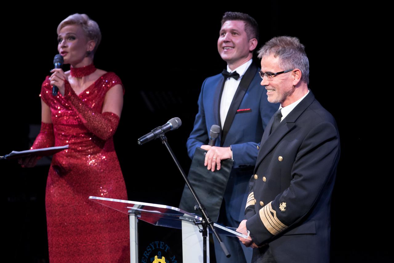 Rektor Uniwersytetu Morskiego w Gdyni złożył specjalne podziękowania i wręczył statuetki Ministrowi MGMIŻŚ Markowi Gróbarczykowi, oraz Prezydentowi Gdyni Wojciechowi Szczurkowi. W imieniu Ministra MGMIŻŚ nagrodę odebrała Podsekretarz Stanu w MGMiŻŚ Pani Anna Moskwa, zaś Prezydenta Gdyni reprezentowała Przewodnicząca Rady Miasta Gdyni Pani Joanna Zielińska. Nie zabrakło także podziękowań złożonych na ręce prof. Janusza Zarębskiego - wyrazy wdzięczności i uznania Rektorowi UMG złożyli m.in.: Przewodnicząca Rady Miasta Gdyni Pani Joanna Zielińska, Senator RP Pan Sławomir Rybicki, członkowie zarządu Związku Piłsudczyków Rzeczpospolitej Polskiej – generał brygady Związku Pan Tomasz Madej, podpułkownik Związku Pan Adam Rytwiński, Szef Biura Finansowego PŻM Pan Waldemar Stawski i Główny Nawigator PŻM Pan Ireneusz Gowin, Rektor Hochschule Bremerhaven Pan prof. Peter Ritzenhoff oraz Konsul Honorowy Francji Pan Alain Mompert, który wspólnie z chórem Uniwersytetu Morskiego w Gdyni zachwycił wykonaniem znanych ballad.