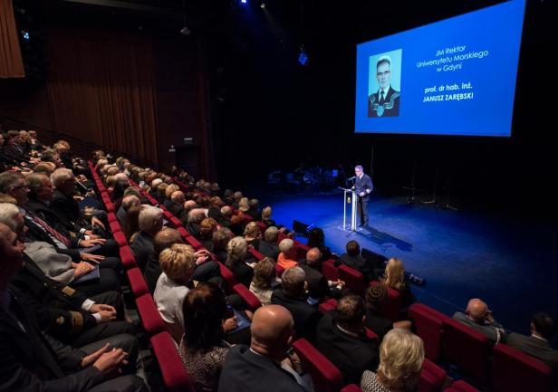 Rektor UMG prof. dr hab. inż. Janusz Zarębski podziękował przybyłym gościom za wsparcie w dążeniu do uniwersyteckiego statusu oraz przedstawił plany rozwoju Uczelni na przyszłość. JM Rektor ogłosił również powstanie Komitetu Obchodów 100-lecia Uniwersytetu Morskiego i gospodarki morskiej pod honorowym patronatem Ministra Gospodarki Morskiej i Żeglugi Śródlądowej Marka Gróbarczyka.