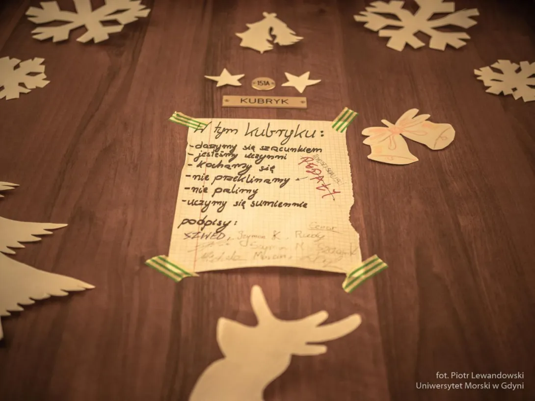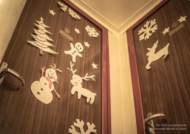Szóstego grudnia to także dzień świętego Mikołaja. Nie obyło się bez niespodzianek. Rano zastałem na moich drzwiach przepiękne ręcznie wycinane papierowe ozdoby. Złośliwiec jeden (czyli ja sam) powiedział że to wizytówka – „tu mieszka bałwan i jeleń”, ale sprawcy twierdzą, ze jest w błędzie. Okazało się że wiele innych drzwi zostało podobnie ozdobione. Na podniesieniu bandery Mikołajki wręczyły wybrańcom piękne ręcznie robione skarpety wypchane łakociami. Teraz w różnych zakamarkach statku ruszyła nielegalna produkcja łańcuchów na choinki które mamy dostać w San Francisco -  bosman pilnuje łańcuchów kotwicznych ;-), bo jest konkurs na najdłuższy
