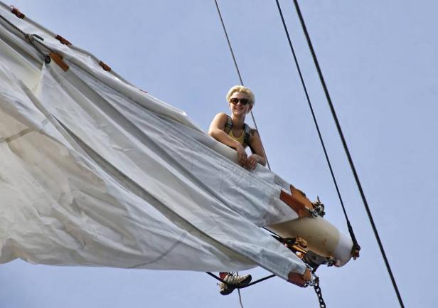 To był dzień pełen żeglarskich emocji. Prognozy się potwierdziły i od rana wiał łagodny wiatr z NE - E, idealny dla naszych planów. Po obiedzie spuszczono szalupę i RIB'a z ekipą filmowo-fotograficzną, a zaraz potem ogłoszono "Alarm do żagli".