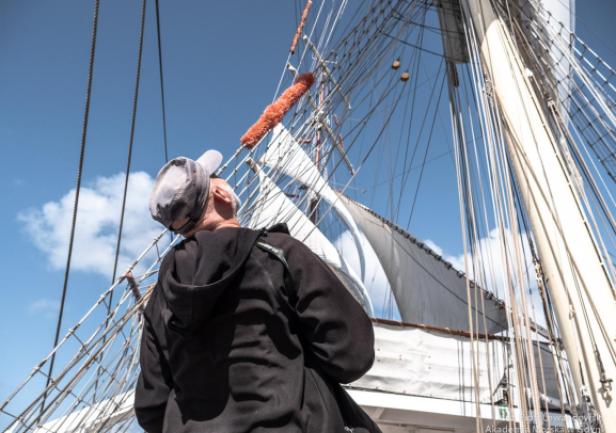 "Dar" długo czekał na taki moment. Postawiliśmy WSZYSTKIE żagle (26). Nasi praktykanci robili taką operacje po raz pierwszy i jak na nowicjuszy, mimo upału, spisali się rewelacyjnie. Najpierw postawiono "trójkąty", następnie kolejne żagle rejowe. "Dar" rósł żaglami "do nieba". Nie pamiętam w jakiej kolejności Balzac wymieniał najpiękniejsze rzeczy, ale dla mnie fregata pod pełnymi żaglami zawsze jest przed baletnicą w tańcu i koniem w galopie. Zrobiliśmy płynny zwrot przez rufę, a kamery uwieczniły statek na tle zachodzącego słońca.