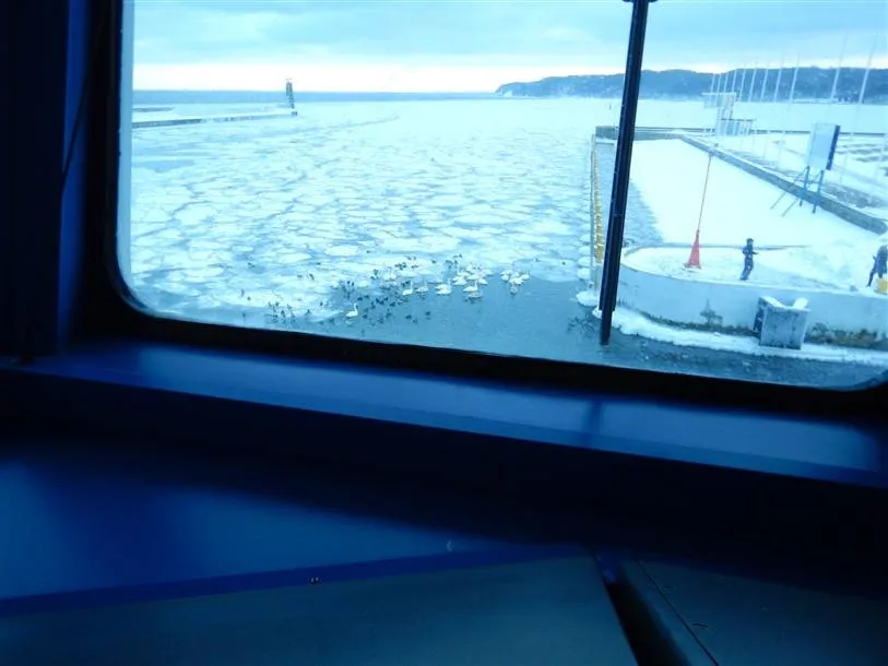 Minusowe temperatury w Polsce spowodowały szybkie zalodzenie portu Gdynia. Jeszcze 2 dni temu (pierwszego marca) mieliśmy delikatne lodowe „pancakes” (naleśniki lodowe), a dzień później lód gęstniał i twardniał z godziny na godzinę. Widoczny jest już „dark nilas”, czyli świeży ciemny lód. Aż po wyjście za główki główne portu Gdynia jest już świeże pole lodowe. Co słabsze, małe jednostki już mają problem w poruszaniu się po wodach portowych. Trzeba uważać na stery strumieniowe, bo ich śruby może uszkodzić pokruszony lód. Poruszające się w lodzie statki zostawiają „krwawy ślad”. To powłoka farby przeciwporostowej (antifouling’u).