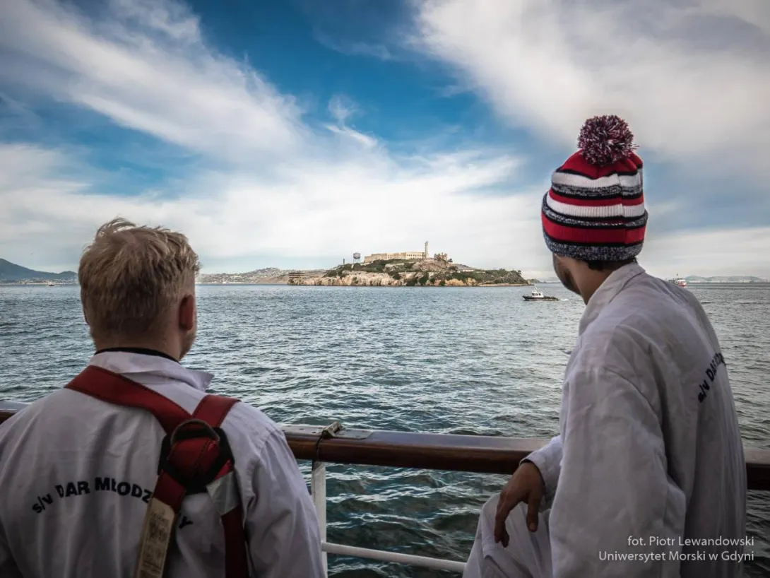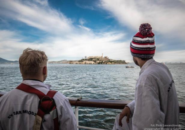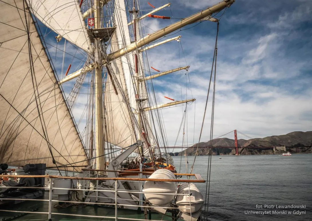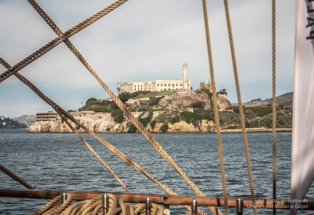 W kilku zdaniach o San Francisco.  Nie udało się wejść do Golden Gate na żaglach, szkoda. Na przeszkodzie stanęła amerykańska biurokracja, życie. Na wyjściu udało się nam postawić wszystkie sztaksle i kliwry – chyba całkiem ładnie wyglądało.