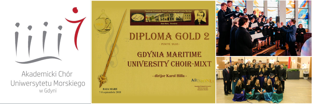 Miło nam poinformować, że Akademicki Chór Uniwersytetu Morskiego w Gdyni zdobył złoty dyplom na Międzynarodowym Konkursie Chóralnym im. Liviu Borlana w Baia Mare w Rumunii. Podczas ósmej edycji Konkursu, który odbył się w dniach 6-9.09.2018 wystąpiły zespoły z Włoch, Ukrainy, Bułgarii, Rumunii, Polski, Węgier i Słowacji. Chóry oceniane były przez liczne grono jurorów z Estonii, Rumunii, Włoch, Litwy i Polski. Organizatorzy zgotowali wszystkim zespołom życzliwe przyjęcie i zadbali o świetną atmosferę Konkursu.