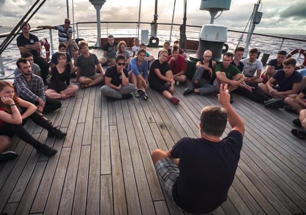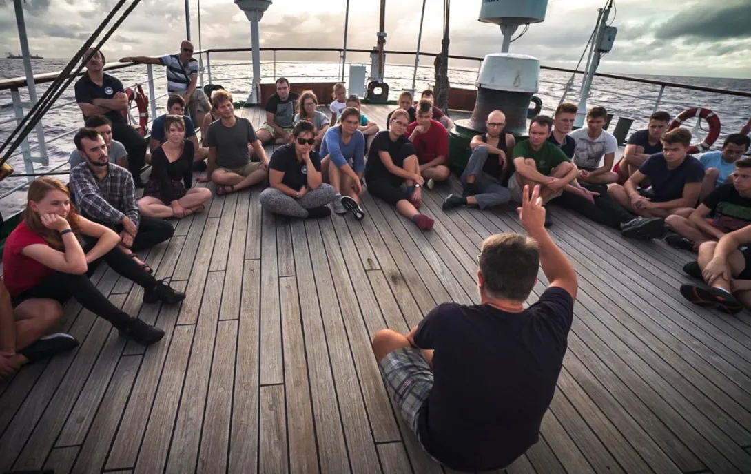 Wszelkie oczekiwania przeszedł jednak dzisiejszy wykład naszego lekarza statkowego, pana doktora Iwo Sługockiego. Przez godzinę w pełnym skupieniu słuchaliśmy porywającej, pełnej niebanalnego humoru opowieści o układzie nerwowym, mózgu, neurologii i procesie uczenia się. Popularyzacja nauki najlepszej próby. „Upragniony ciąg dalszy” musi nastąpić.