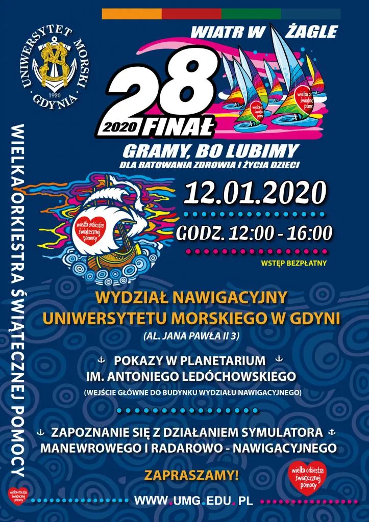 Uniwersytet Morski w Gdyni (UMG) zagra podczas 28. Finału Wielkiej Orkiestry Świątecznej Pomocy. 12 stycznia 2020 roku w godz. 12:00 - 16:00 zagramy dla zapewnienia najwyższych standardów diagnostycznych i leczniczych w dziecięcej medycynie zabiegowej.