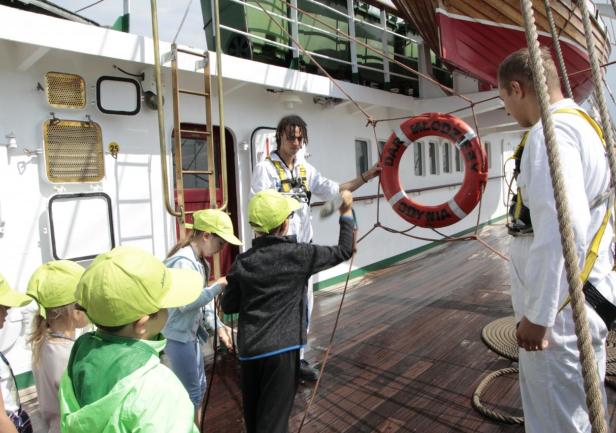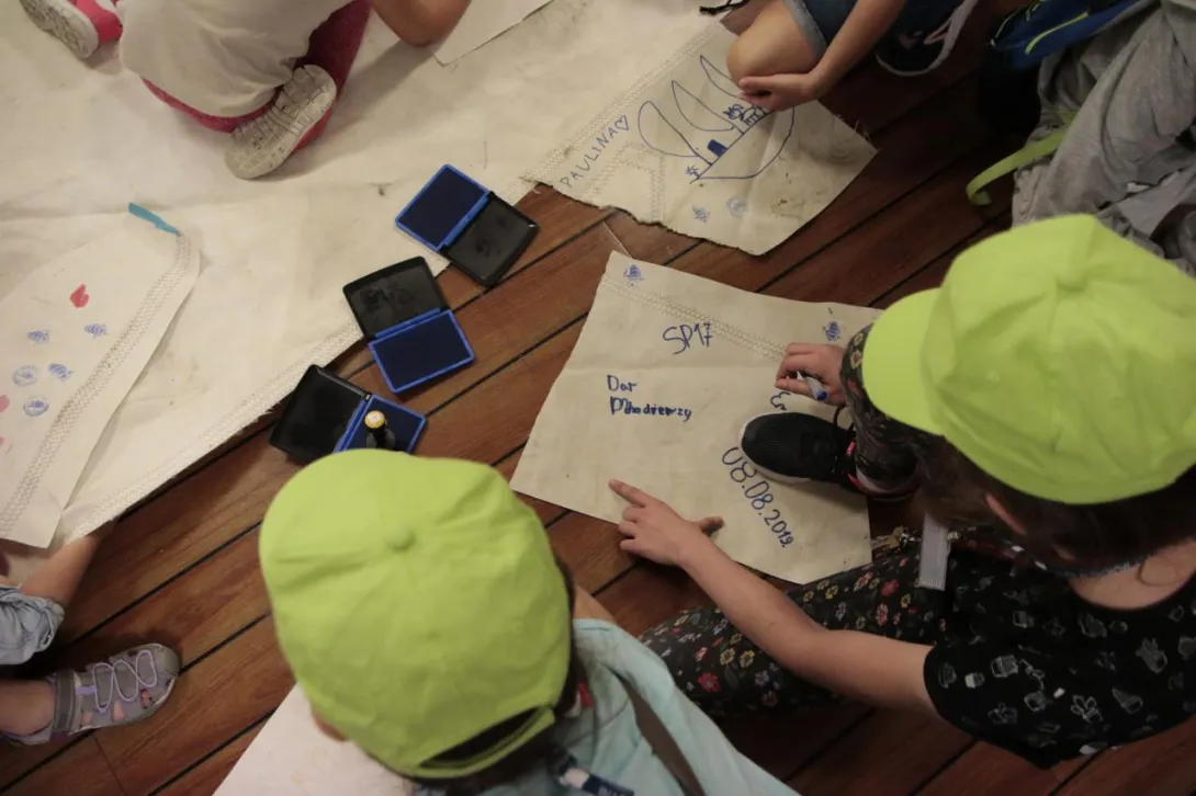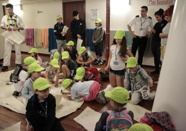 Czwarty dzień nazwany został dniem marynarza nie bez powodu. Dzieci uczestniczyły w pokazach w Planetarium im. Antoniego Ledóchowskiego i zajęciach na symulatorach ECDIS. Największą atrakcją tego dnia była jednak wizyta dzieci na pokładzie Daru Młodzieży. Większość z nich pierwszy raz w życiu weszła na pokład naszej trzymasztowej fregaty. Dzieci na pokładzie przywitał kapitan Rafał Szymański. Na pamiątkę wizyty na Darze Młodzieży, każde z dzieci otrzymało kawałek żagla z własnoręcznie wykonanym rysunkiem.