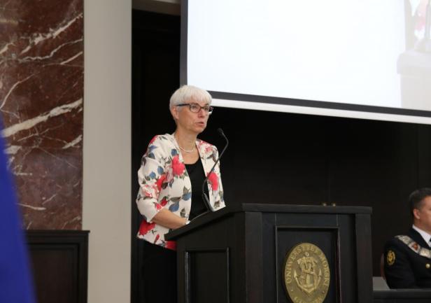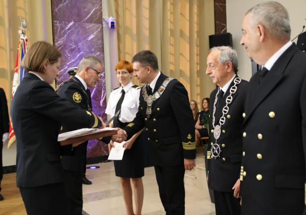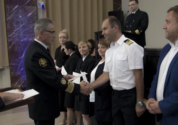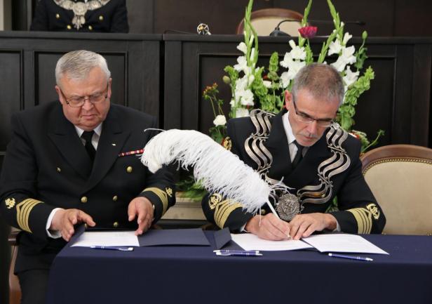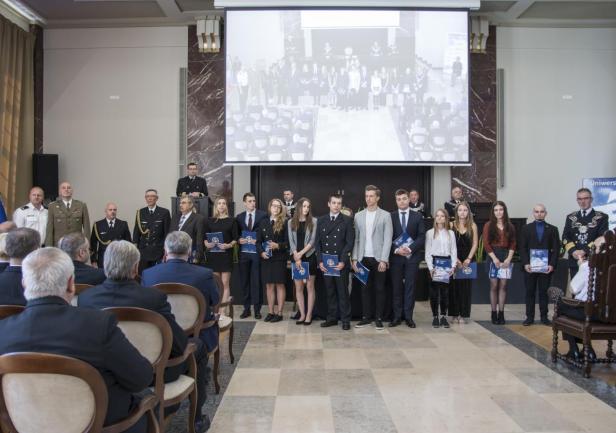 W trakcie uroczystego posiedzenia Senatu JM Rektor wraz z Szefem Wydziału Mobilizacji i Uzupełnień Wojewódzkiego Sztabu Wojskowego, ppłk. Pawłem Górskim i ppor.mar. Krzysztofem Geblerem z Wojskowej Komendy Uzupełnień w Gdyni wręczyli zaświadczenia studentom, którzy ukończyli szkolenie teoretyczne Legii Akademickiej oraz podziękowania dla osób, które te szkolenie przeprowadzili. Legia Akademicka to pilotażowy program ochotniczego szkolenia wojskowego studentów realizowany przez Ministerstwo Obrony Narodowej. Uniwersytet Morski w Gdyni przystąpił do programu przygotowując, przede wszystkim studentów UMG, do szkolenia w wybranych jednostkach wojskowych.