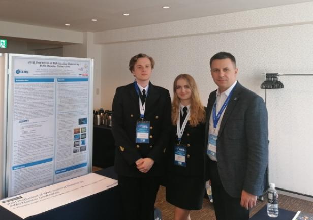 Konferencja IAMU to również część studencka, gdzie  studenci spotykają się i prezentują swoje prace oraz podejmują różne moderowane dyskusje. Spotkania te są  dla studentów również okazją do nawiązania nowych, międzynarodowych kontaktów. W tym roku Uniwersytet Morski w  Gdyni  reprezentowało dwoje  studentów z Wydziału Nawigacyjnego - Pani Gabriela Woś i Pan  Karol Rosołowski.